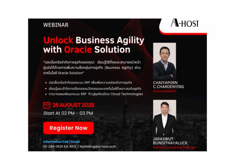 บริษัท เอ-โฮสต์ จำกัด ร่วมกับ Oracle ขอเรียนเชิญท่านเข้…